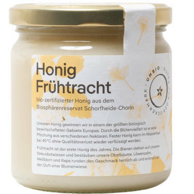 Unsere Honigbienen fliegen durch das Biosphärenreservat Schorfheide-Chorin, welches mit seinen 1.300 km² zu den größten Schutzgebieten Deutschlands zählt. Der Honig wird von uns schonend kalt geschleudert und liebevoll per Hand abgefüllt und etikettiert.