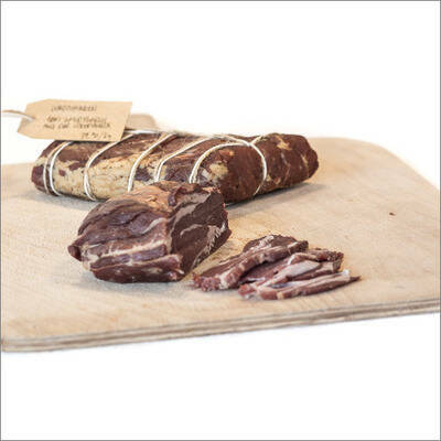 Zutaten: Wildfleisch, Nitritpökelsalz, Wacholder*, Sellerie*, Rauch